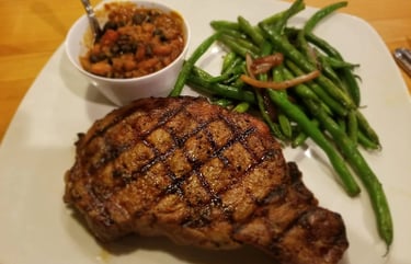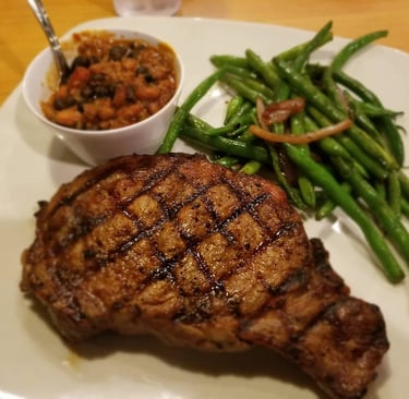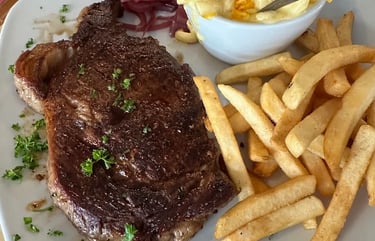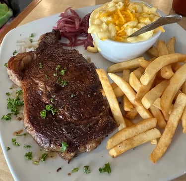 Rib eye steak served with your choice of 2 sides